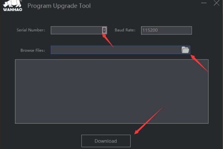 Download the Wanhao STM Update Tool . This application now works only on Windows and haven’t found a way (yet) to flash the firmware with other applications. Anyway you can try to emulate if you are on Linux or Mac and see if it works. The usage is very simple: